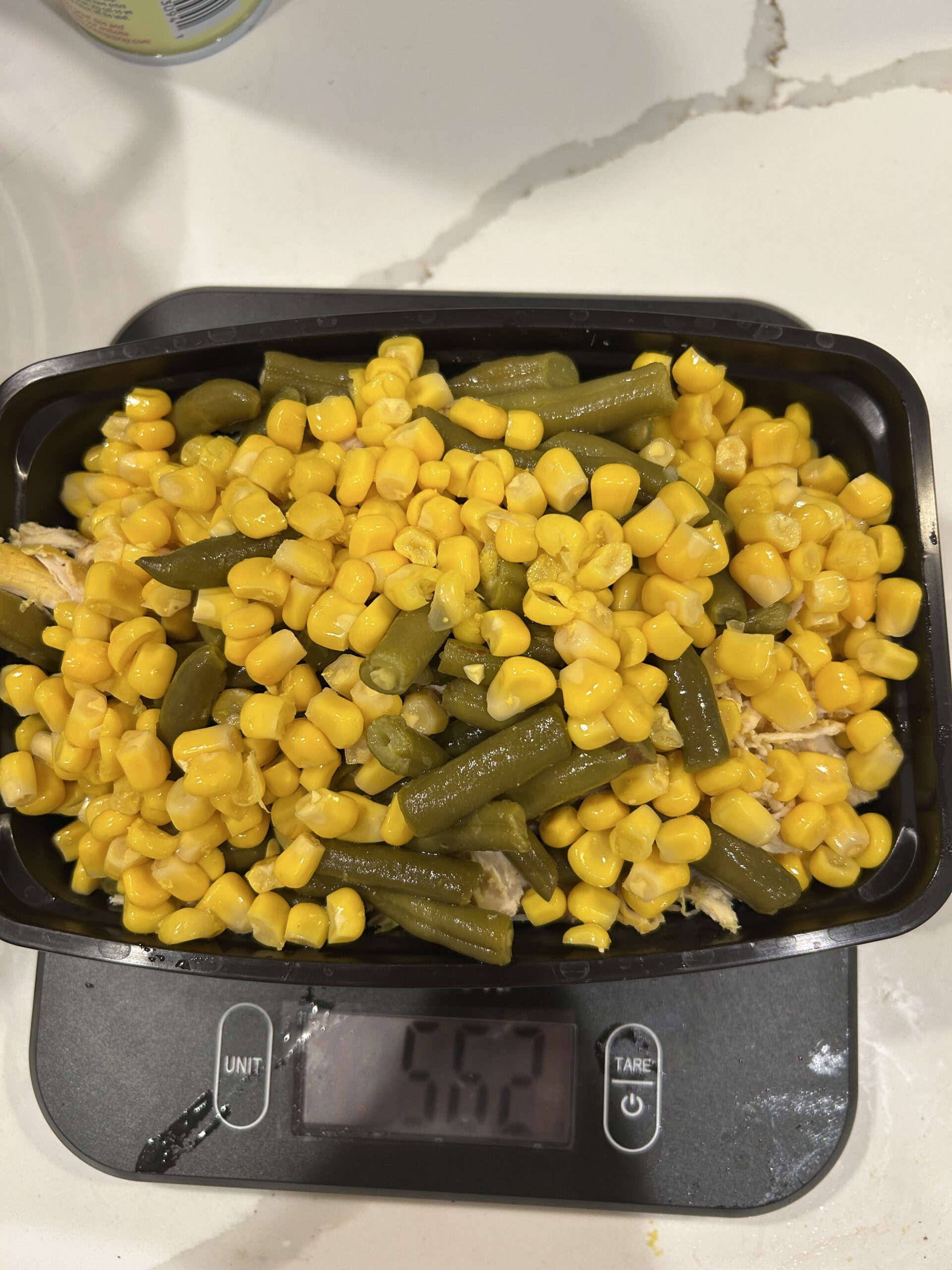 | Carbs | 56–64g | From potatoes and corn + fiber from green beans |